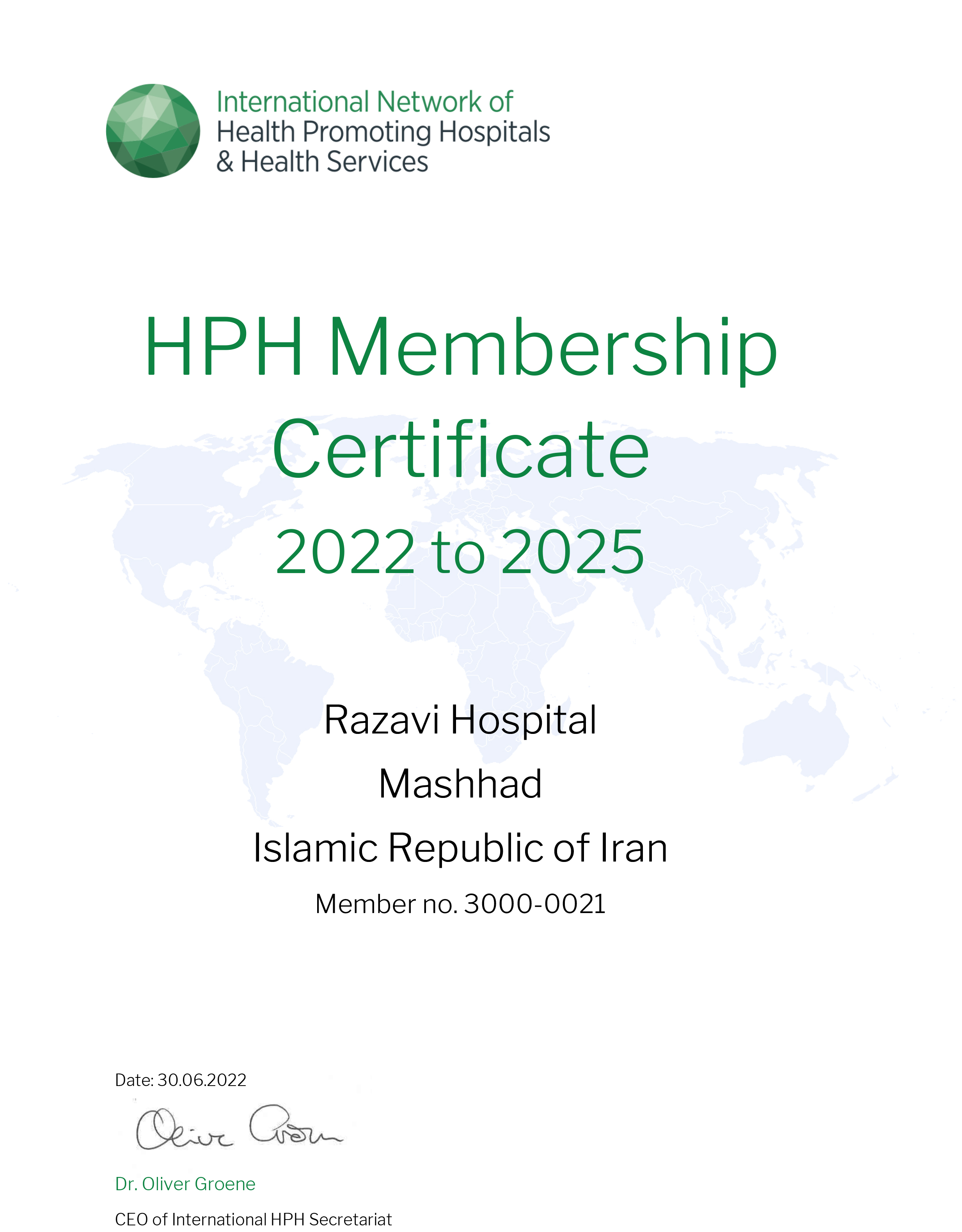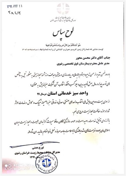افتخار دریافت معتبرترین گواهی نامه ها و استانداردهای بین المللی در حوزه سلامت و درمان